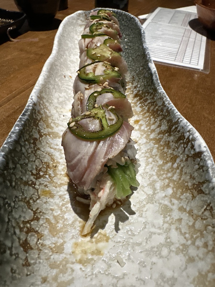 The restaurant offers a variety of menu options covering classic rolls like California and Philadelphia, alongside chef’s specials such as the Hamachi Chili Roll and the richly layered Dragon Roll. The premium sashimi platter and standout items like scallops with caviar and seared yellowtail rolls highlight the kitchen’s focus on fresh ingredients and balanced flavors. For those looking for heartier fare, the teriyaki entrées or tempura dinners provide satisfying alternatives beyond sushi.
