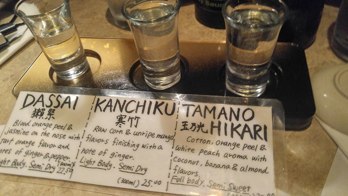 The menu also includes a variety of sushi rolls, nigiri, sashimi platters, and appetizers like miso soup, oysters, and tempura vegetables. A selection of beverages such as sake complements the food offerings. Desserts available include options like assorted mochi ice cream.